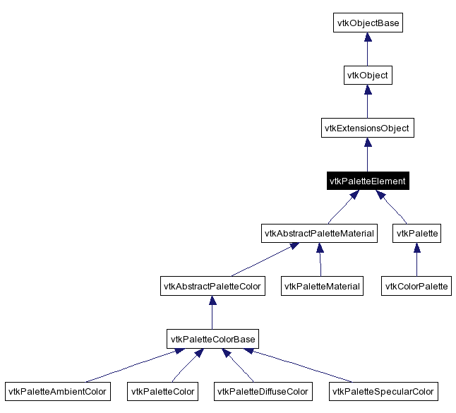 Implemented in vtkPalette, vtkPaletteAmbientColor, vtkPaletteColor, vtkPaletteDiffuseColor, vtkPaletteMaterial, and vtkPaletteSpecularColor. |