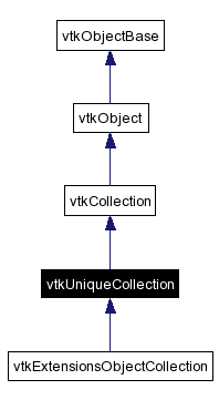vtkUniqueCollection represents and provides methods to manipulate a list of items (i.e., vtkObject and subclasses). The list is unsorted, but does prevent duplicate entries. If items are being appended, prepended, inserted or replacing, they are first removed from any previously occupied position in the collection.